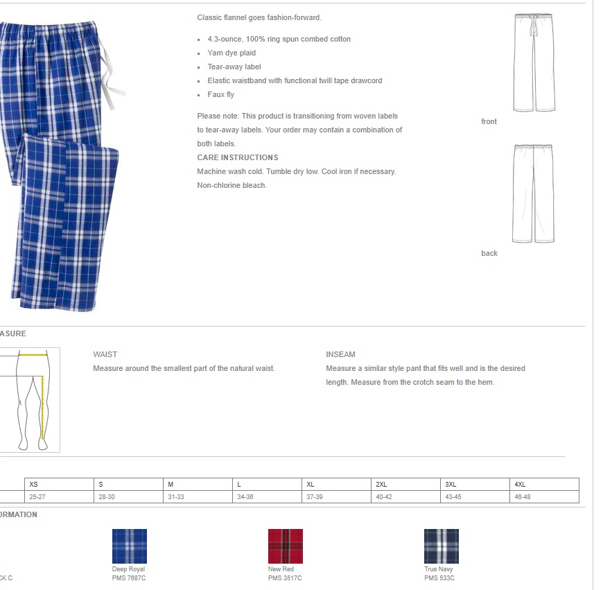 Classic flannel goes fashion-forward. 4.3-ounce 100% ring spun combed cotton Yarn dye plaid Tear-away label Elastic waistband with functional twill tape drawcord Faux fly Please note: This product is transitioning from woven labels to tear-away labels. Your order may contain a combination of both labels.
